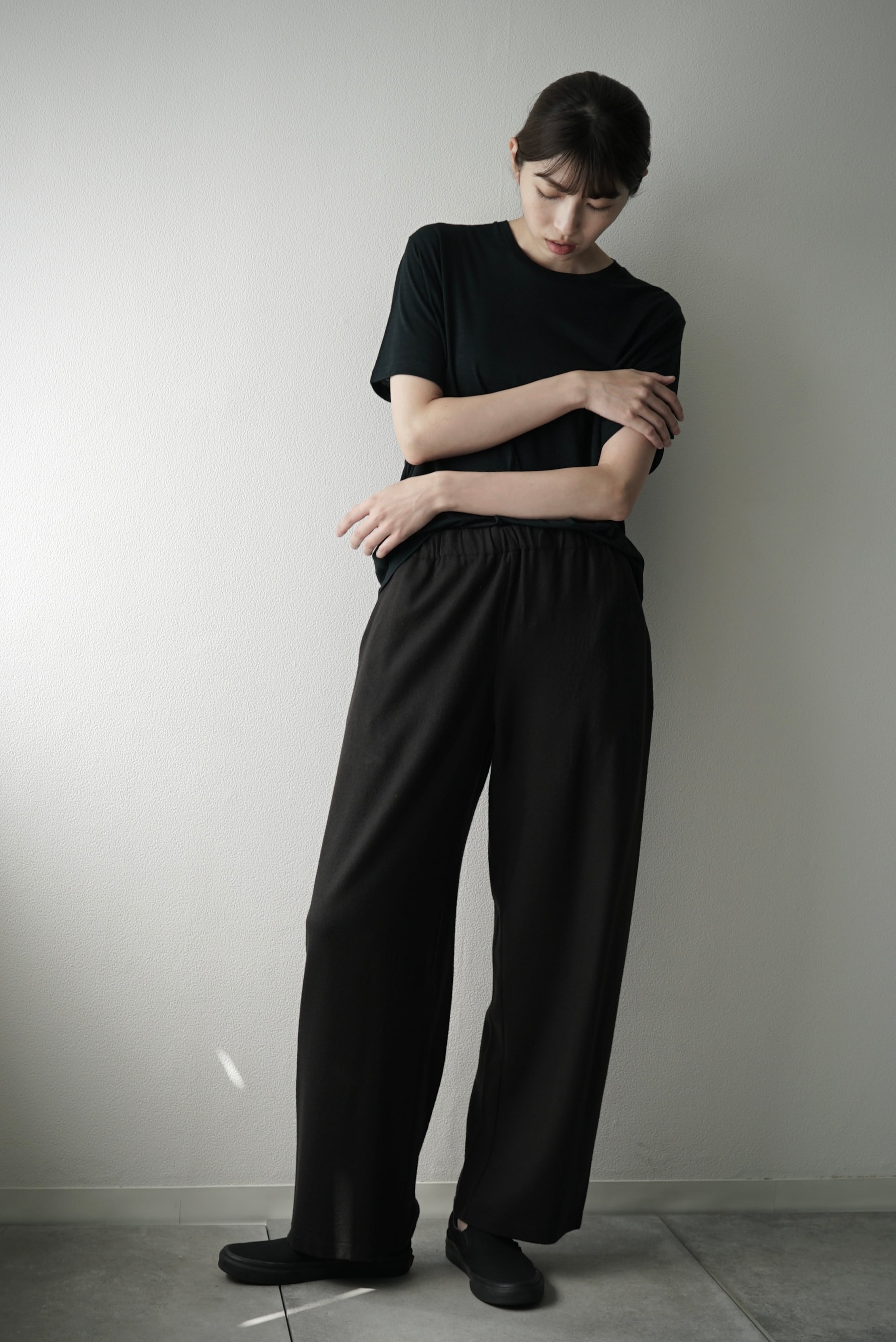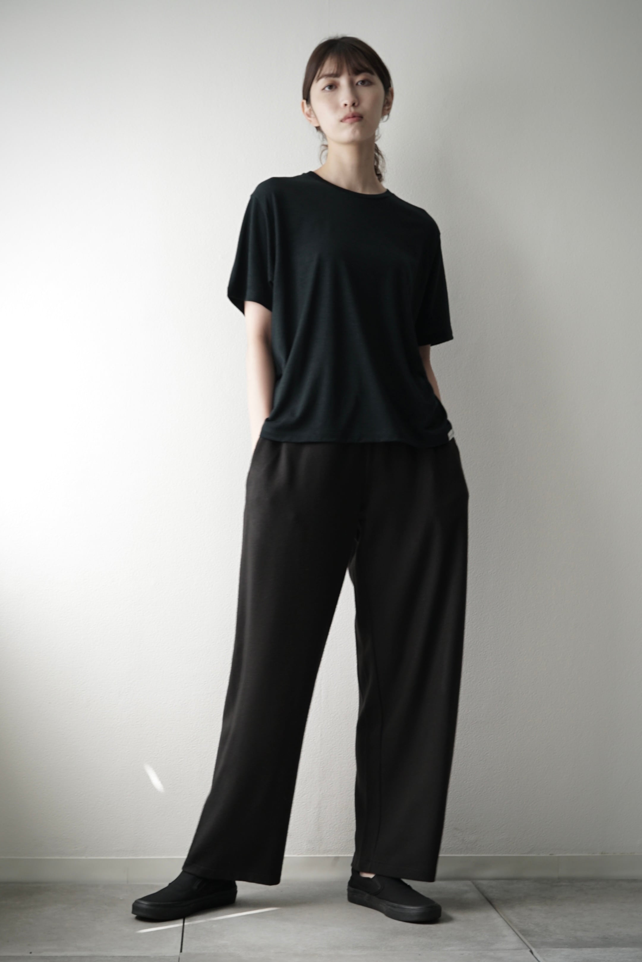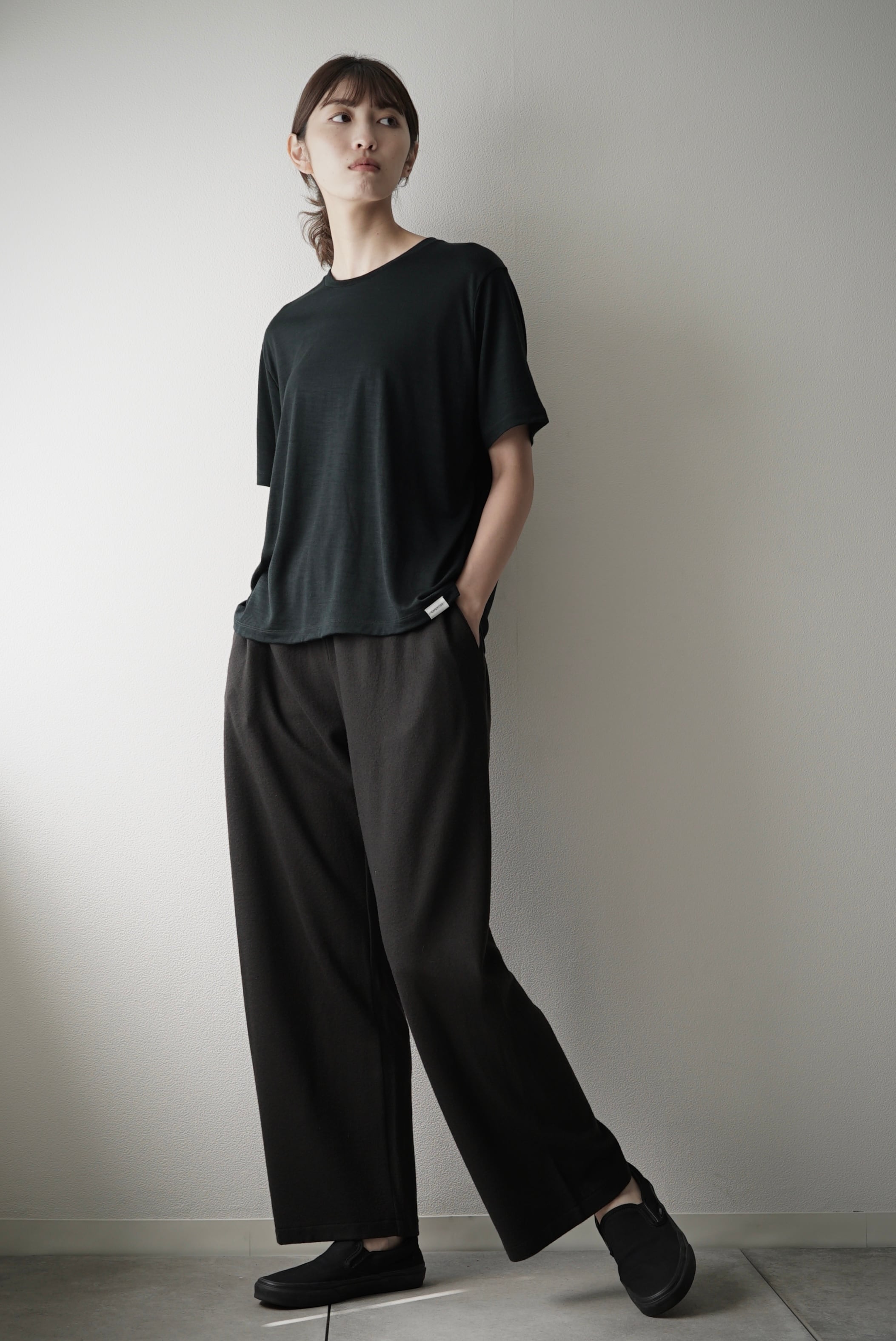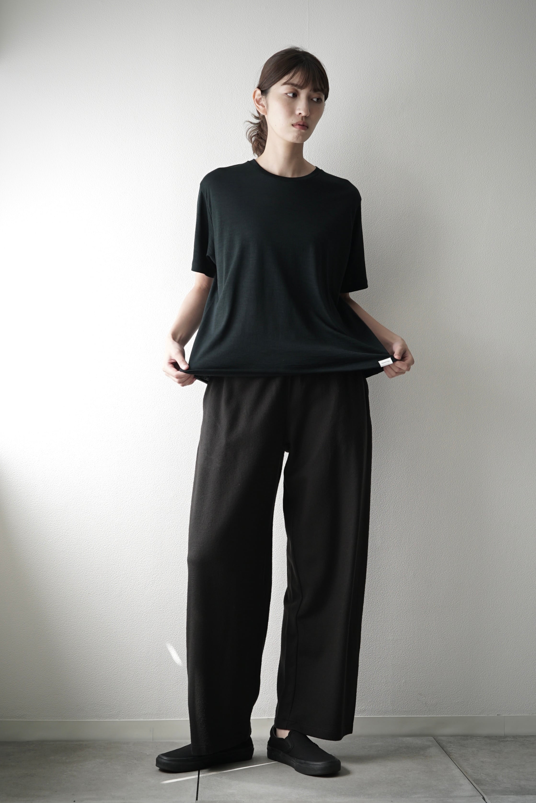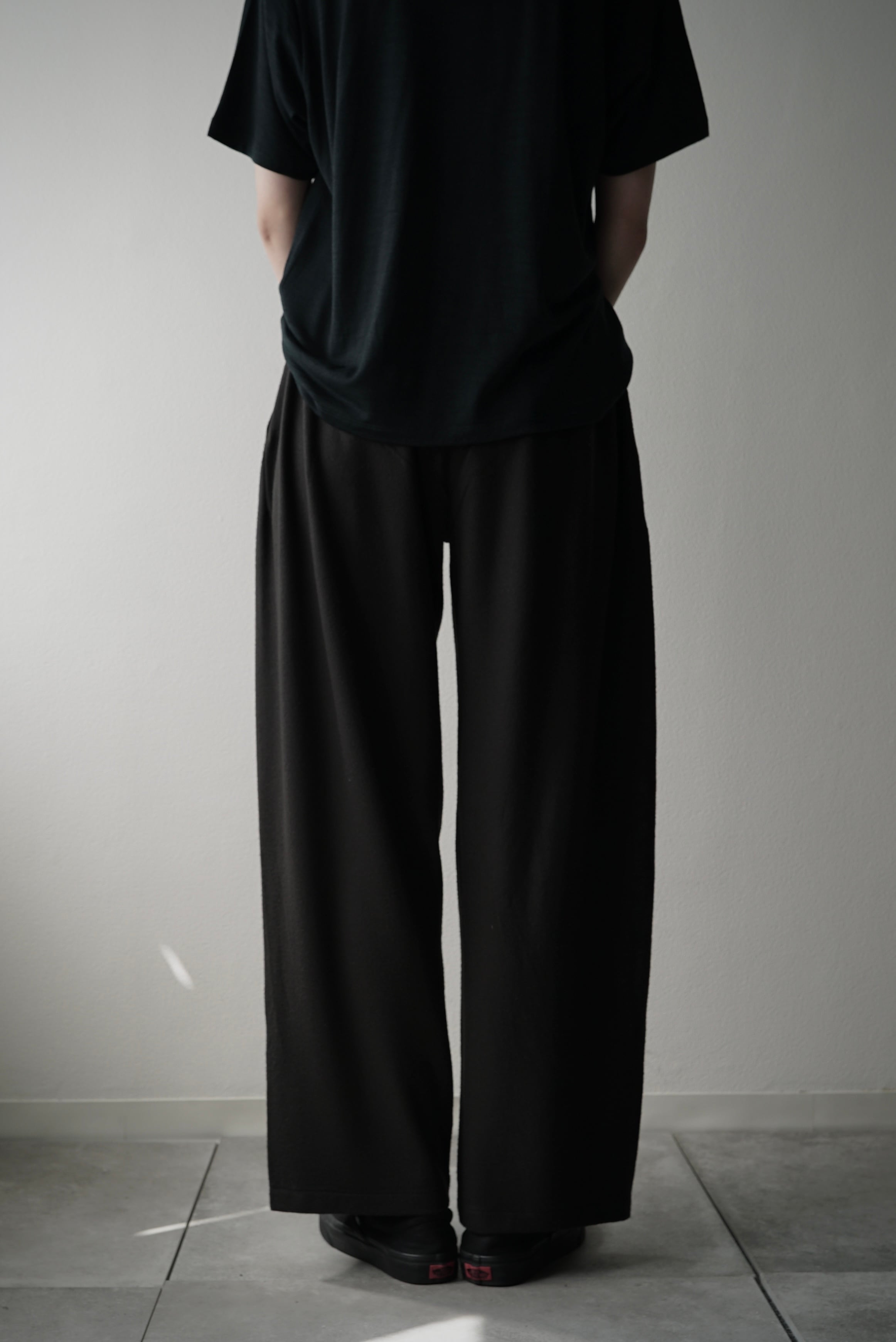 [予約販売] Super140s Washable Wool MW_Jersey / Wide Leg Pants (EBONY)