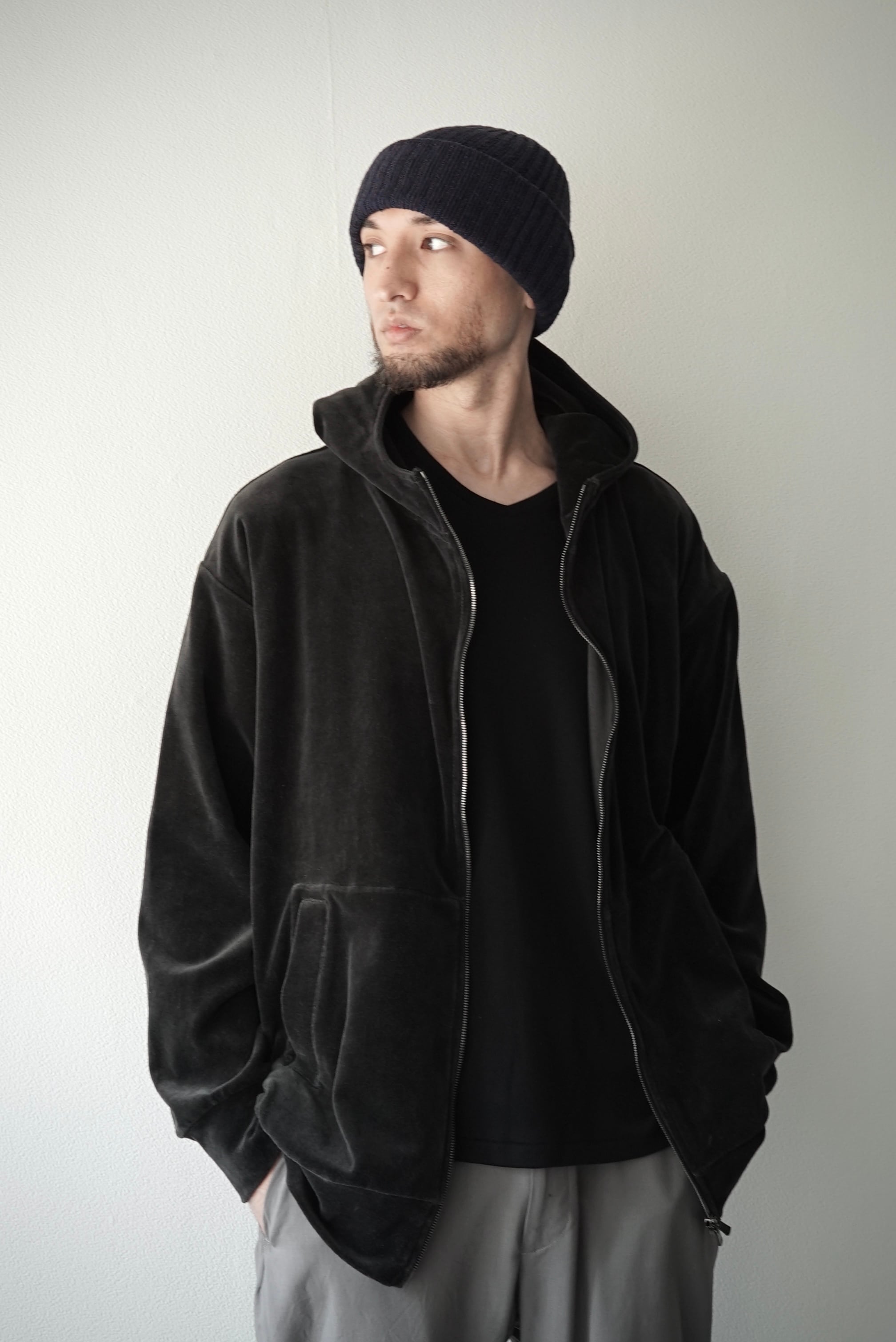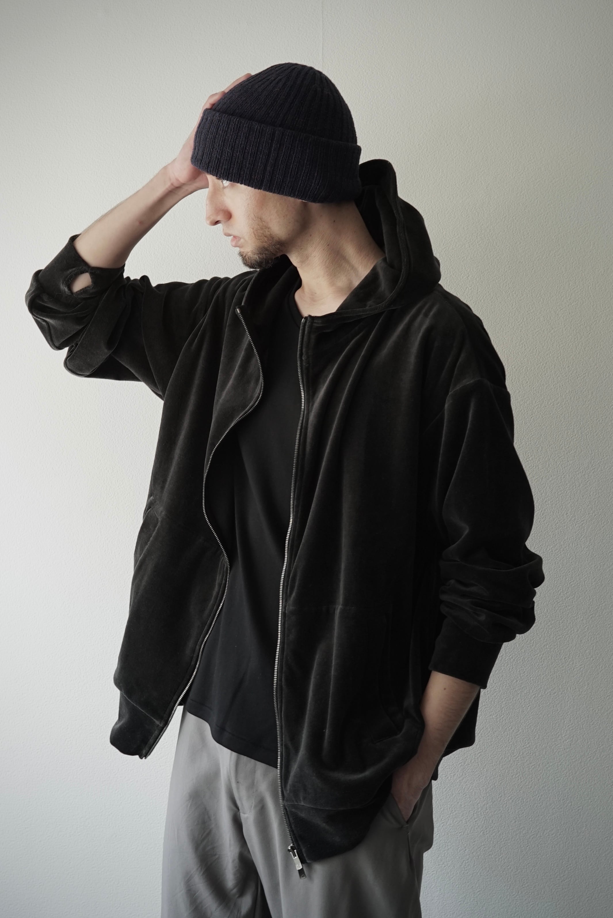 Organic Couon Velour / Zip Hoodie (FADE BLACK)