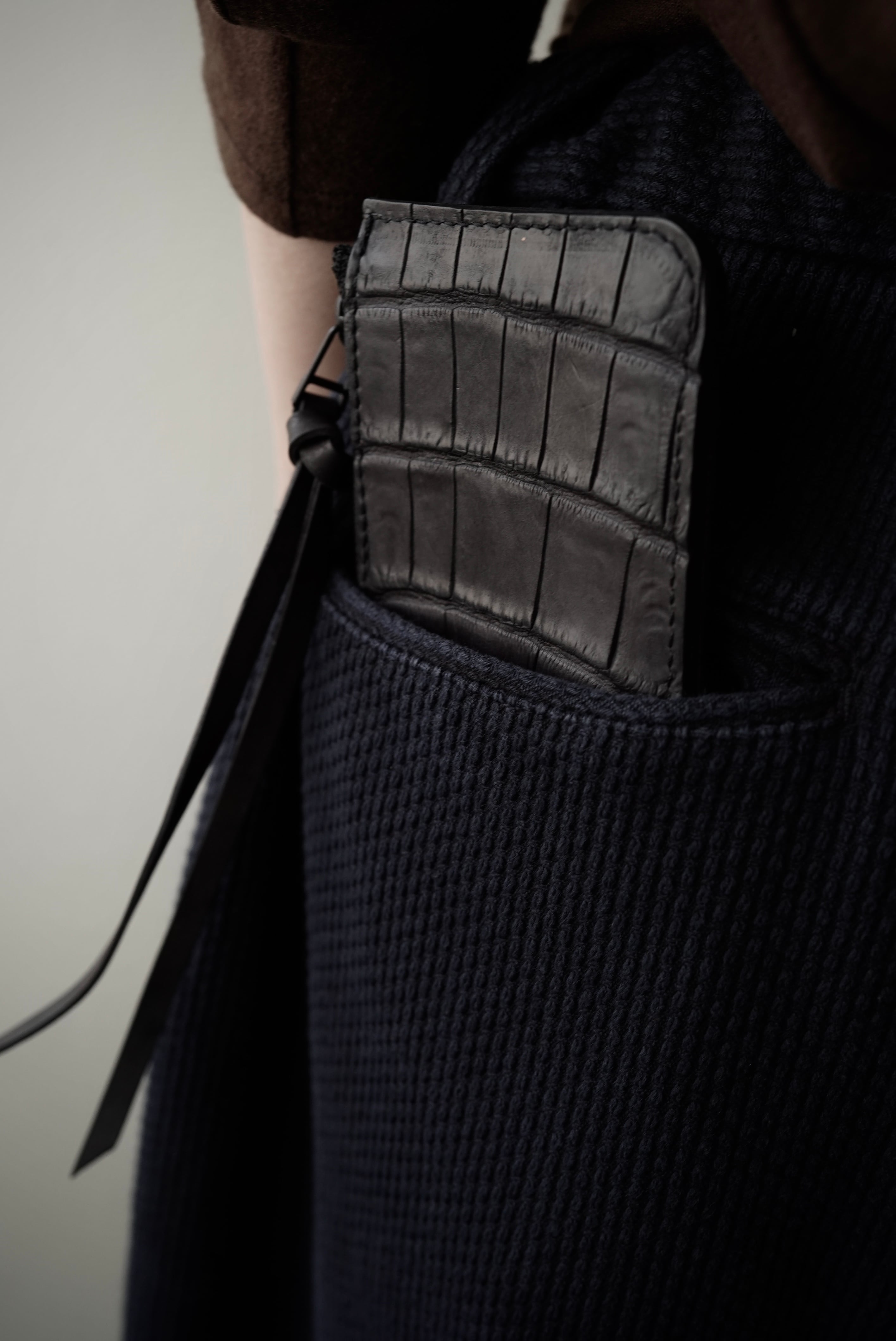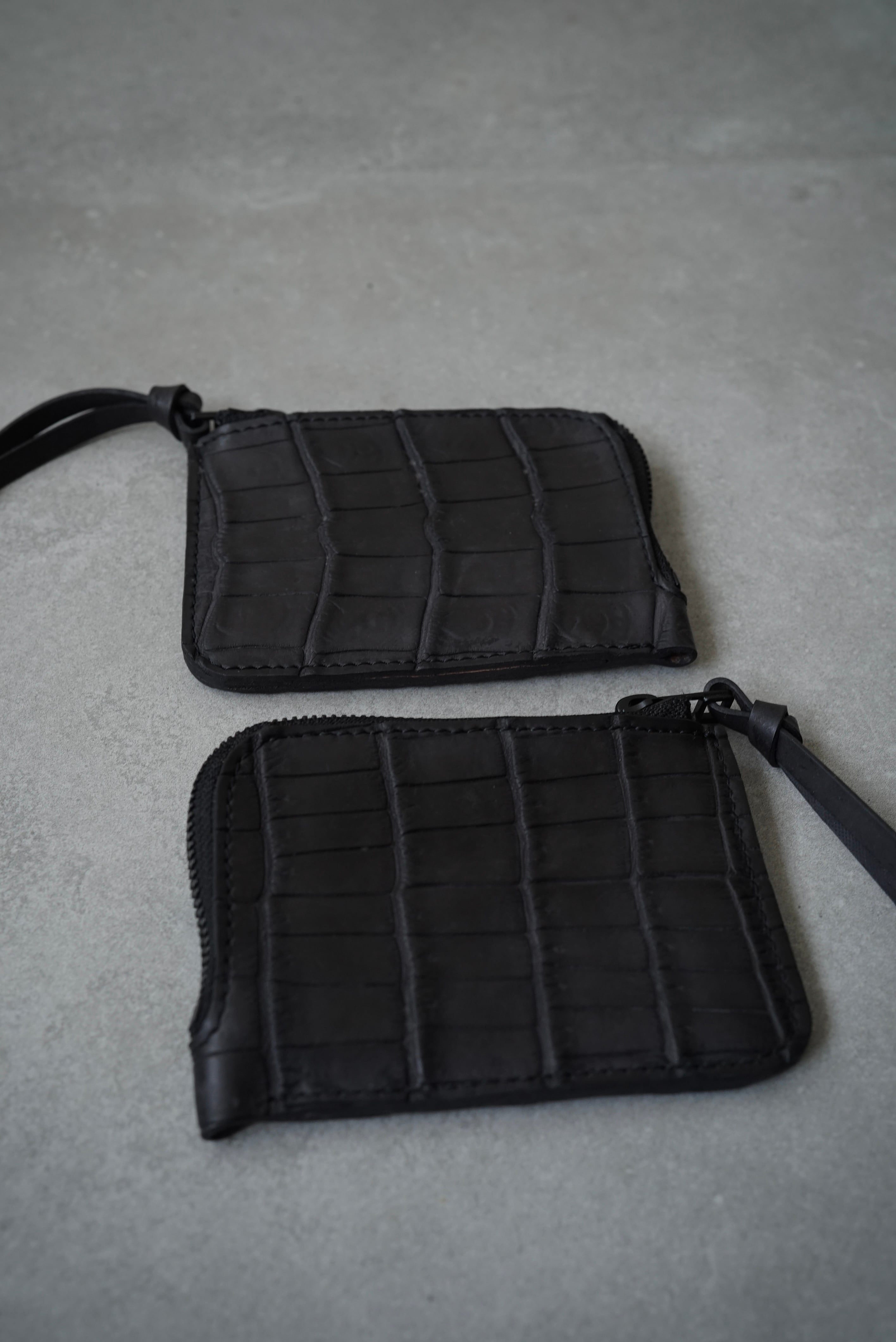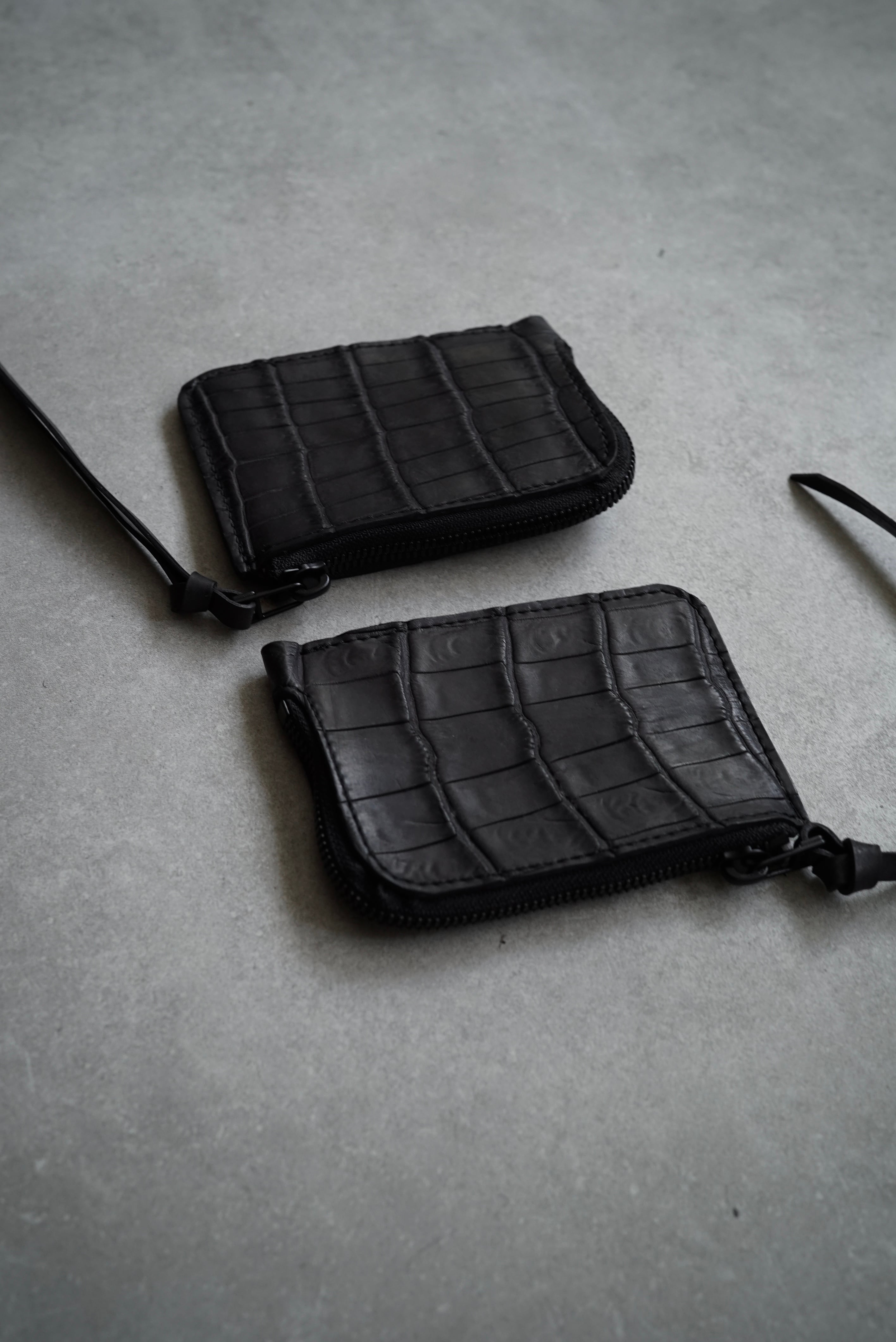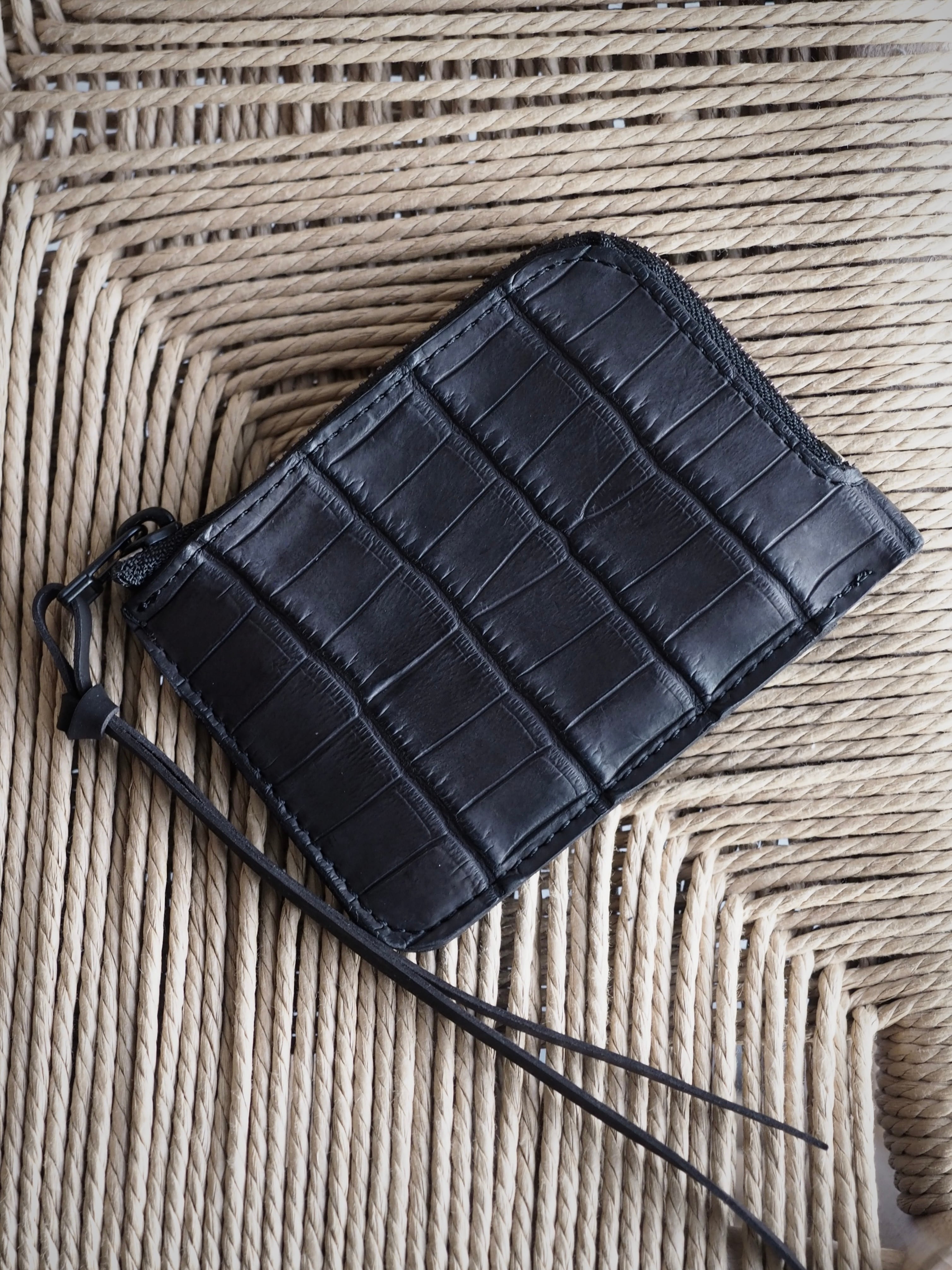 Handmade Leather × Croco/ Zip wallet (BLACK)
