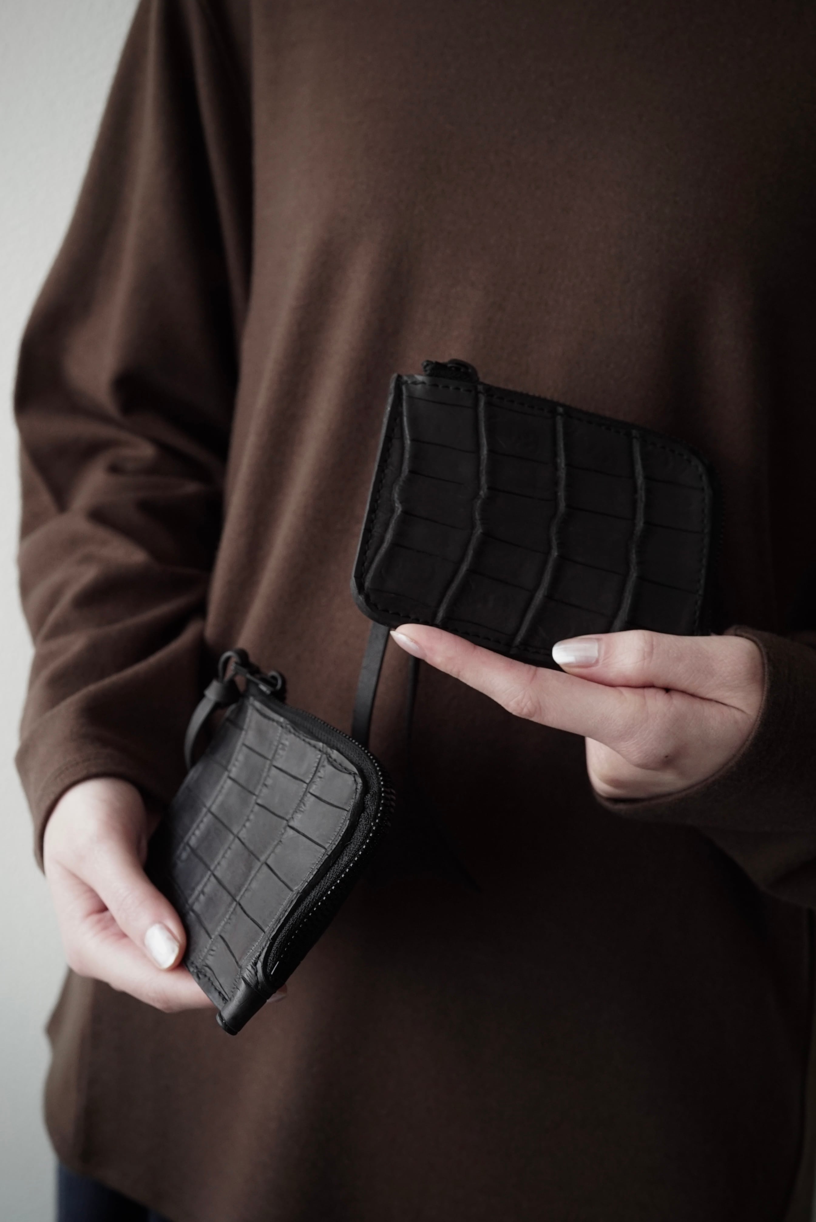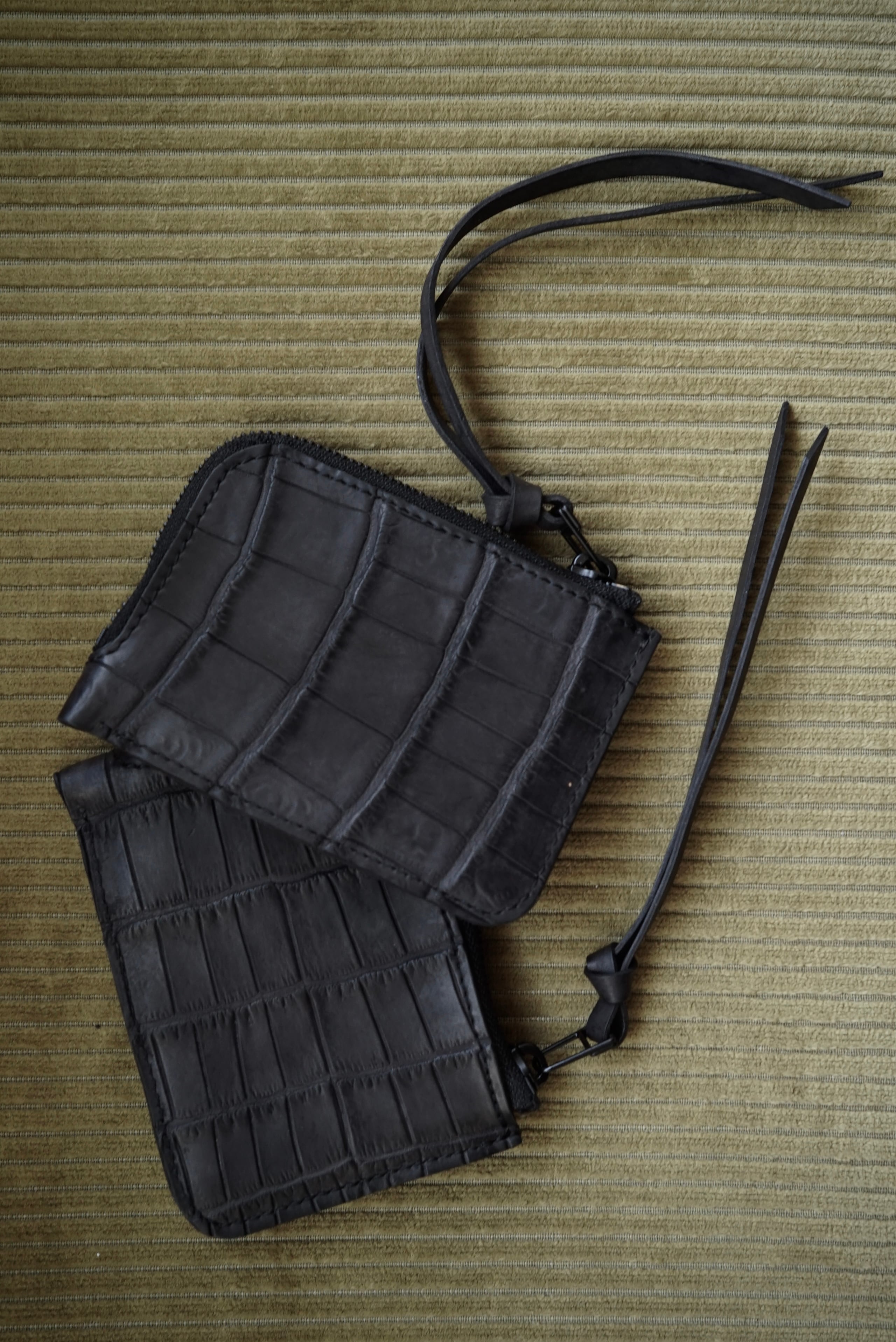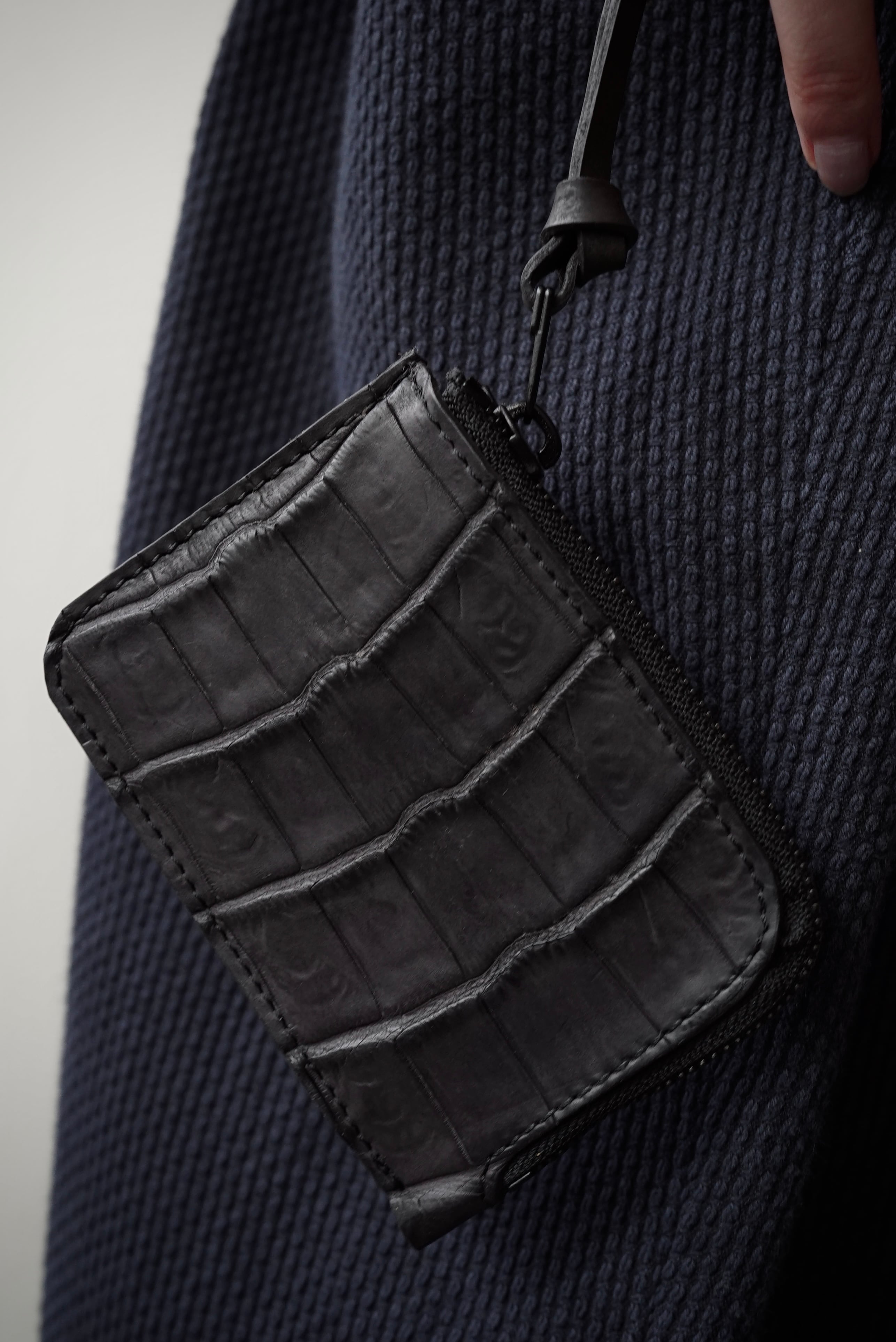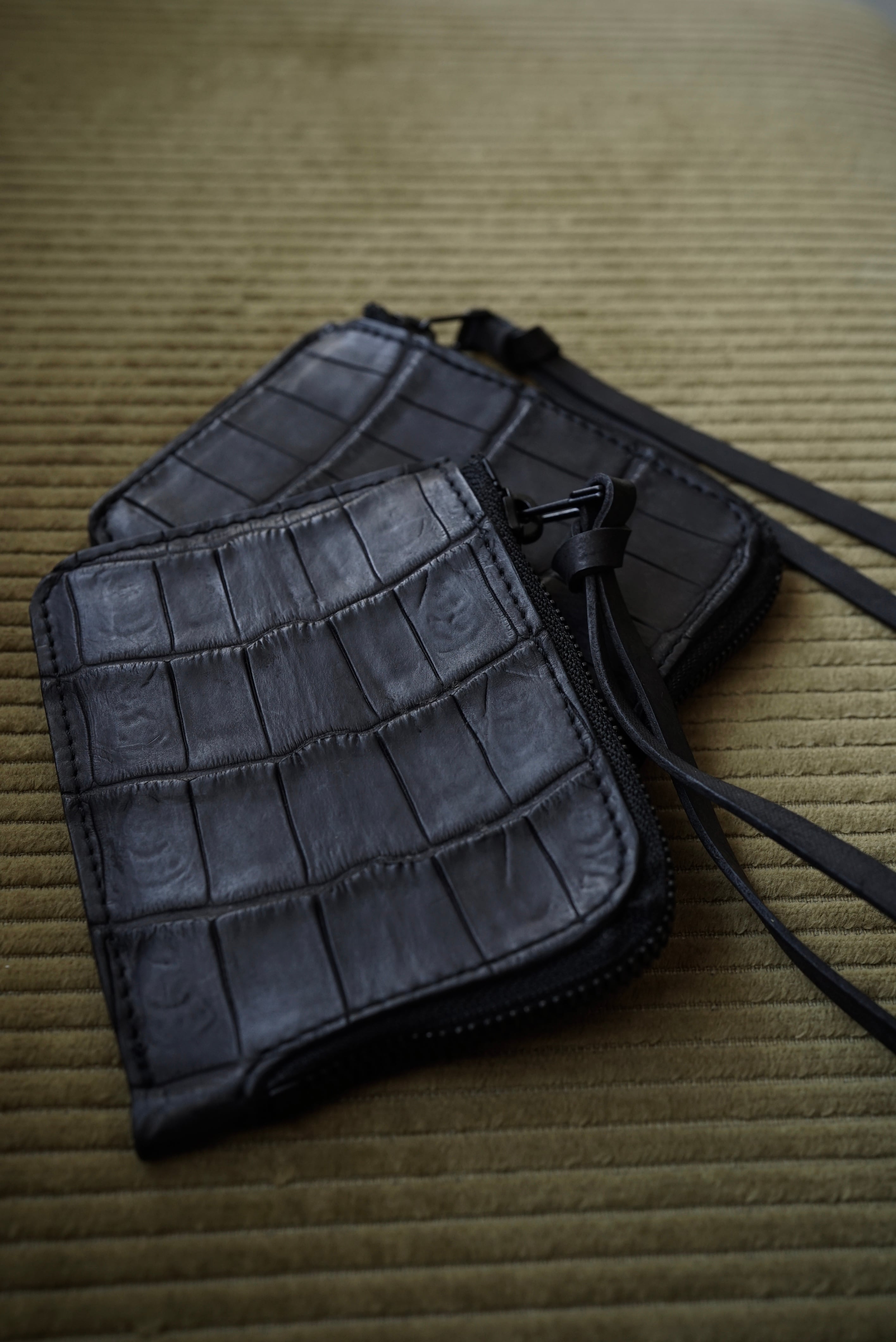Handmade Leather × Croco/ Zip wallet (BLACK)