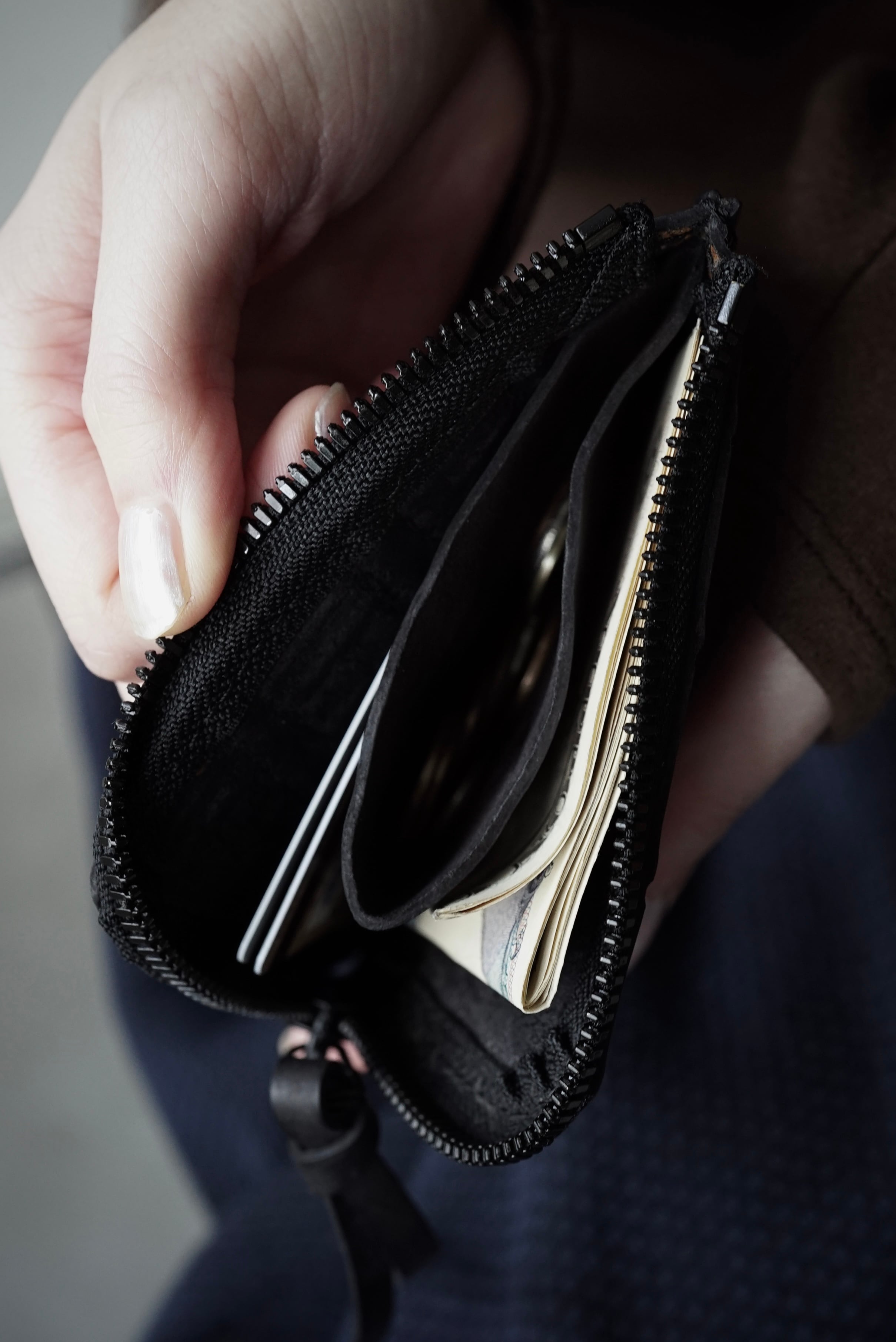 内側も、極力シンプルにお札、カード、小銭を区分けできる