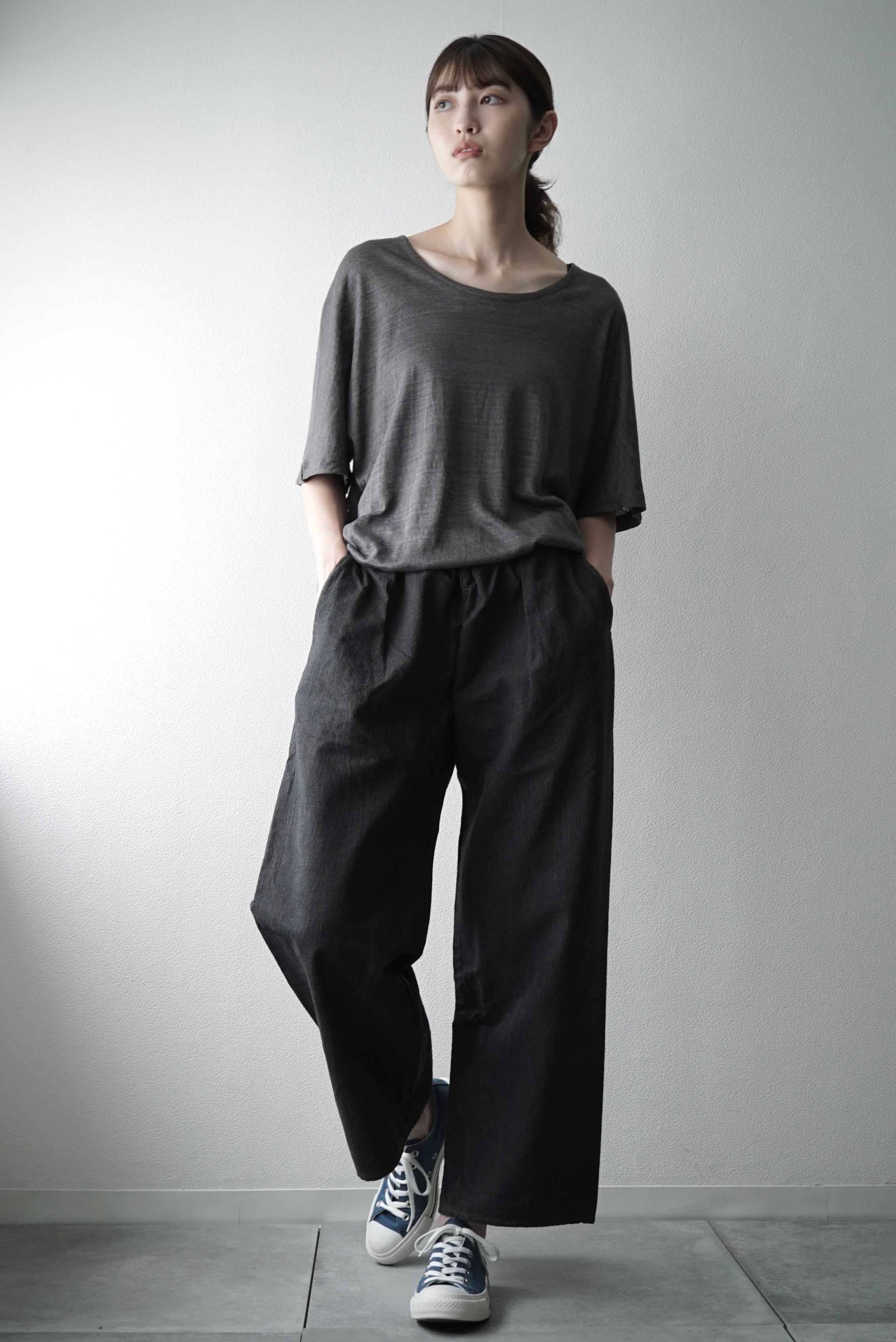 Melange Dobby Stripe / Wide Leg Pants (墨黒)
