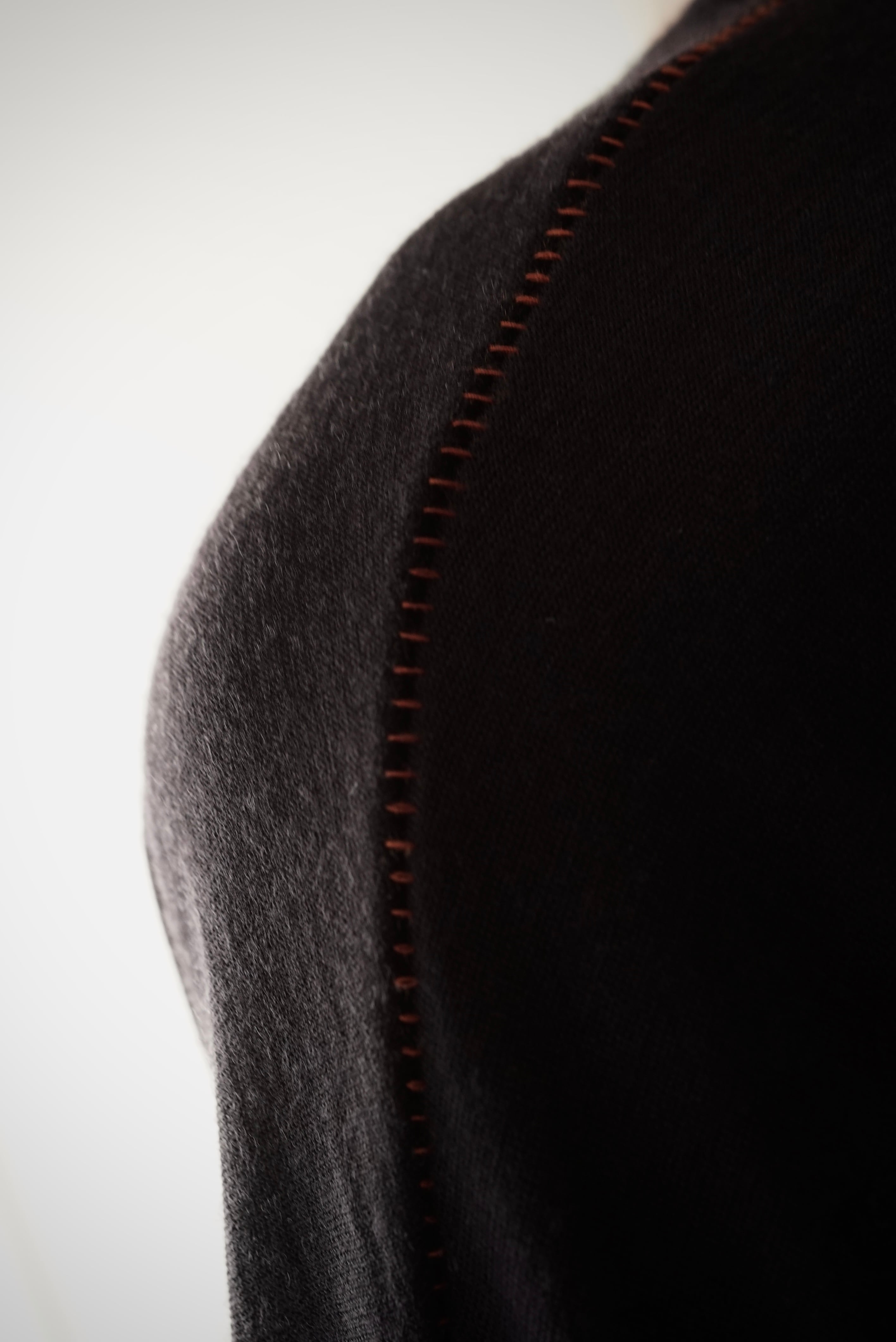 ネック周りは、ややあきが深めでリラックス感のある首元になっています。
