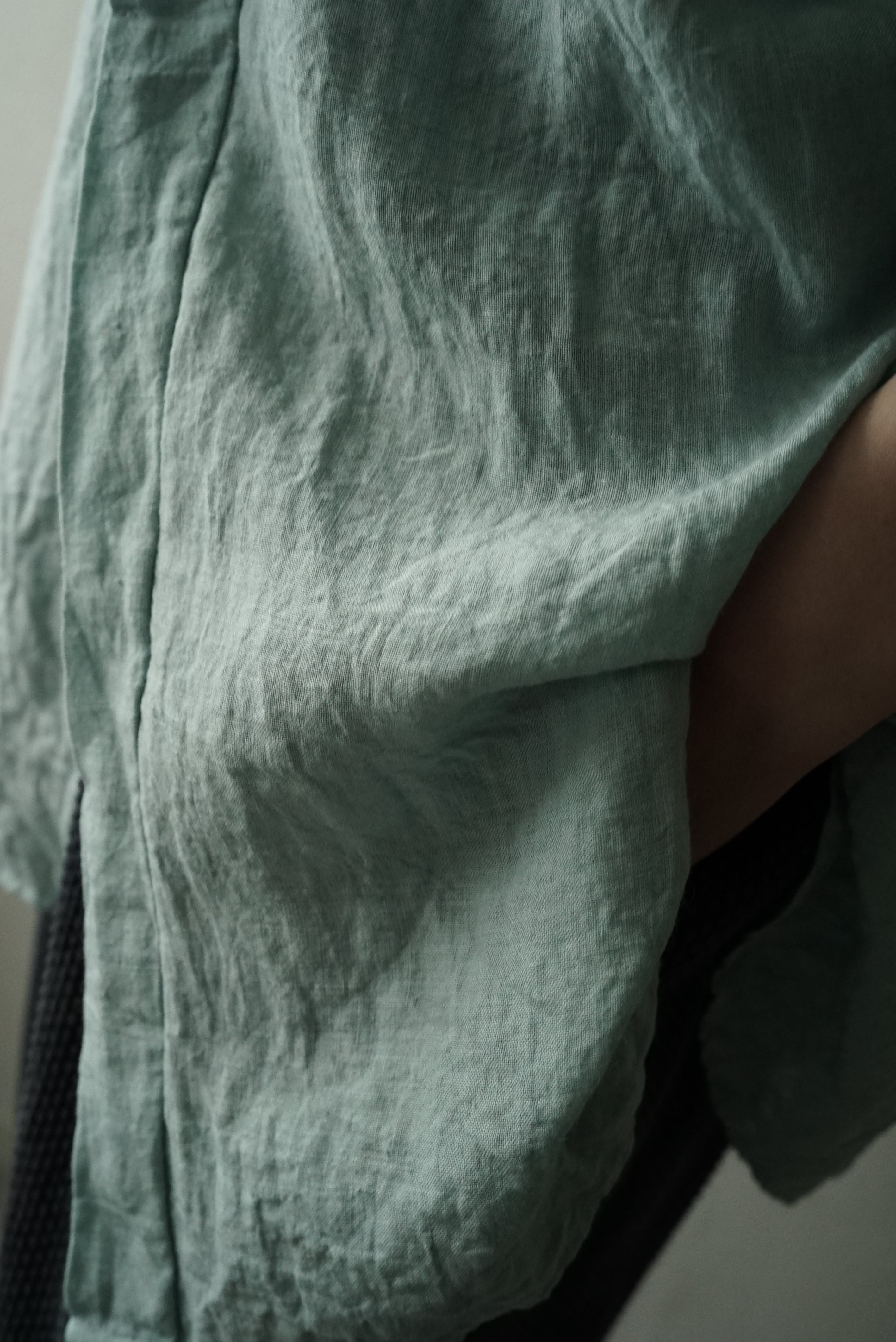 Linen素材の魅力の一つである、ナチュラルなムラ感や清涼感のあるドライな風合いを
