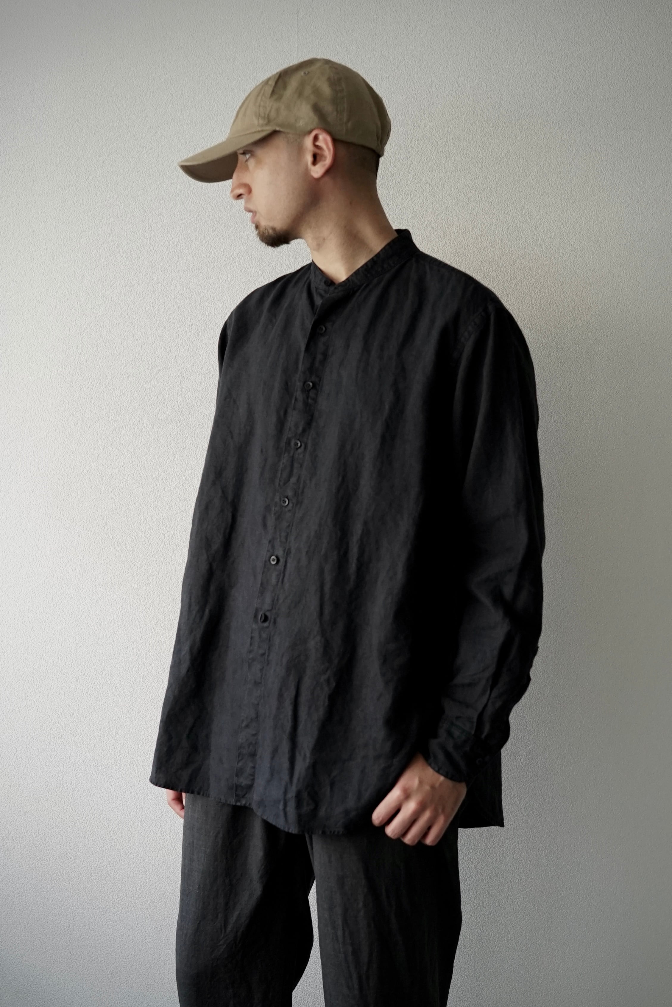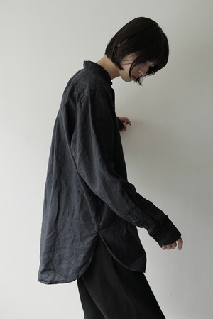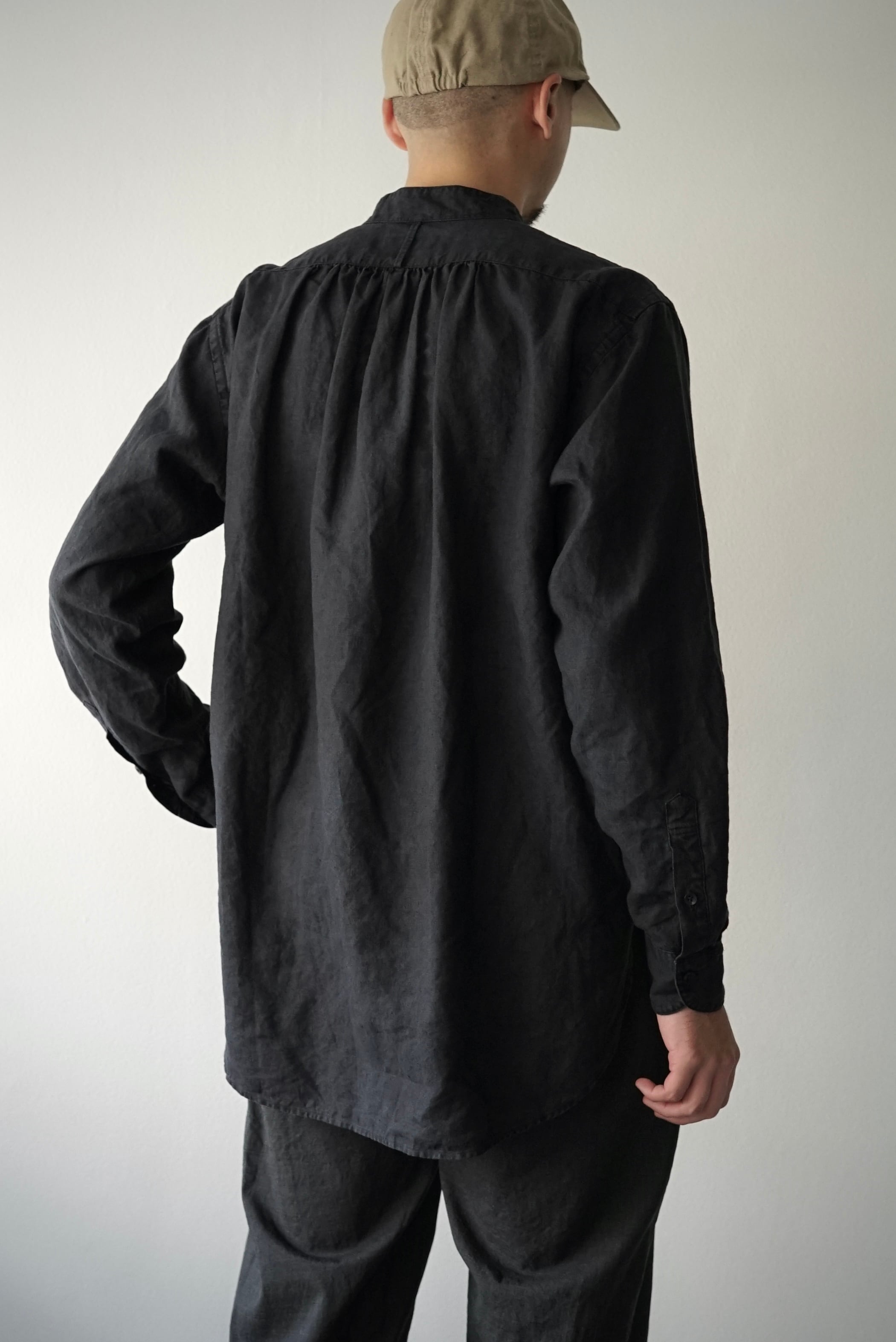 【 天然染めLinenのVintage Black Granpa Shirts】