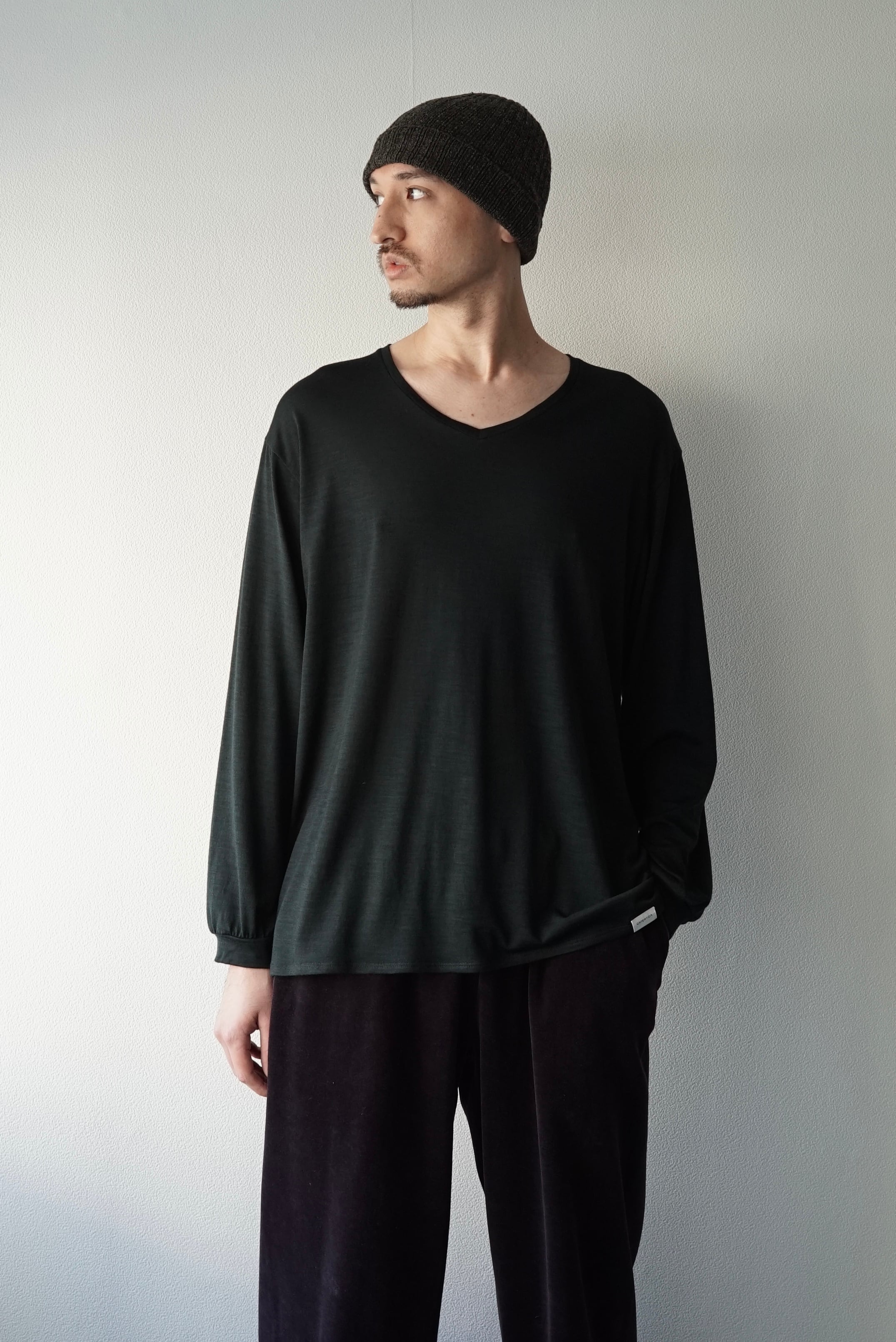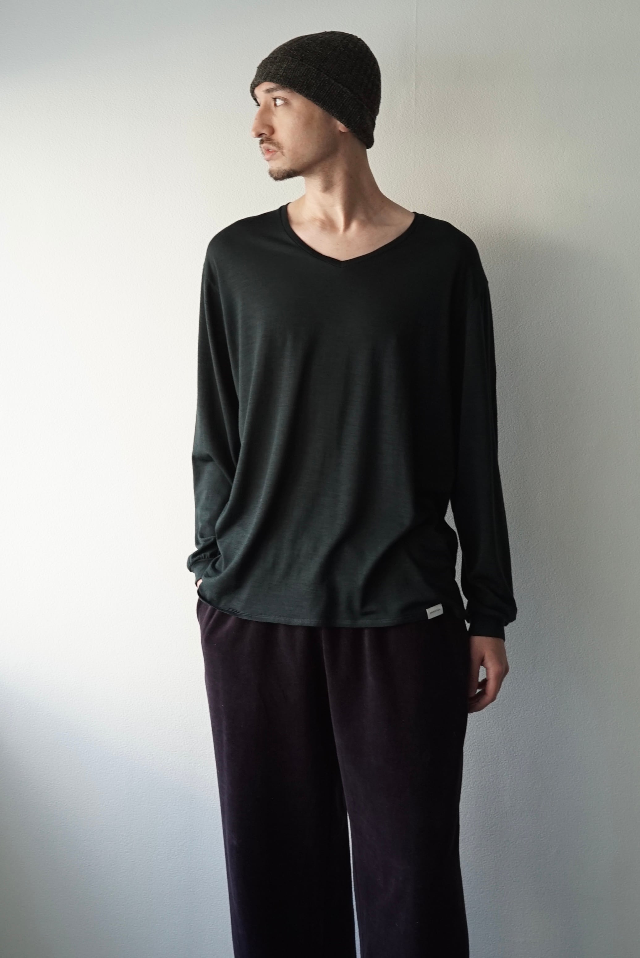 Super120s Washable Wool Jersey /Vneck L/S Tee (CHALK BOARD)